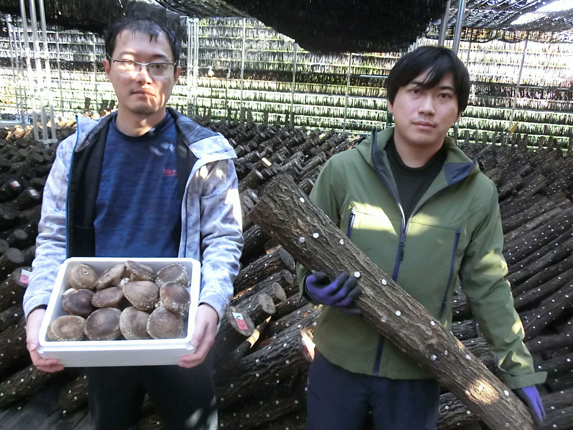 1. 伝統的な原木栽培で育てた生しいたけです。最近では「菌床栽培」のしいたけが増えており、この原木しいたけのシェアは国内で約7%しかない貴重品です。(2021年・林野庁統計資料から計算)