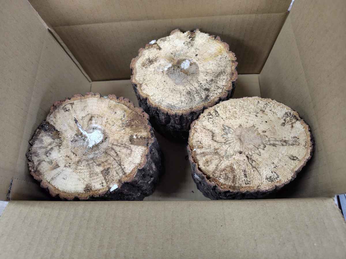 商品発送時は、材の中のしいたけ菌は生きていますが、ホダ木をカットした後ですので、長期間保管すると、しいたけ菌が死ぬ場合があります。